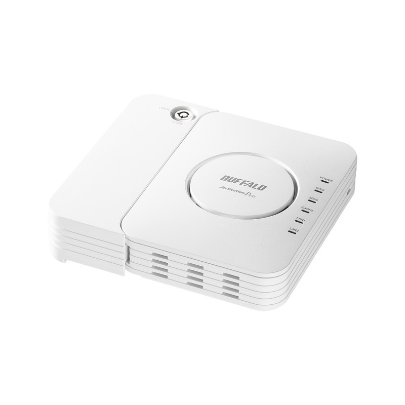 見た目はWAPS-1266と似ていますので後継機種なのでしょう。型番にある通り、IEEE802.11ax (Wi-Fi6) に対応しており、2.4GHzが573Mbps、5GHzが1201Mbpsです。それでも家庭向けモデルよりは遅いですが、より次世代型を求めるならこの機種ですね。