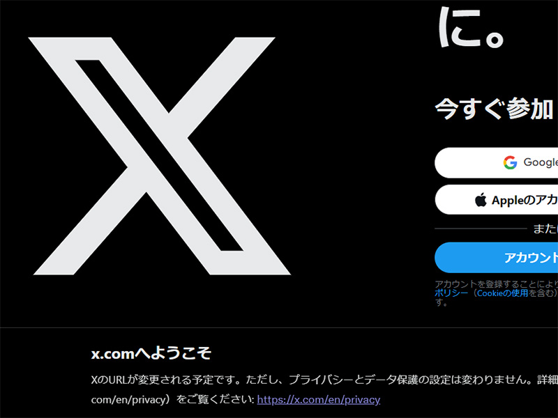X(旧Twitter)のURLが「twitter.com」から「x.com」への変更が本格的に実施されるようだ。編集部の環境でも、x.comへリダイレクトされることが確認できた。