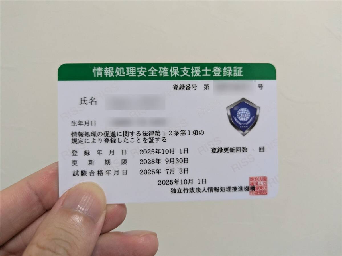 令和7年度春期の情報処理安全確保支援士試験に合格し、当初は登録するつもりはなかったのですが、やっぱり登録することにしました。